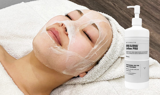 中和不要・簡単施術でお肌に優しいローションタイプの業務用ピーリングローション(オールスキン対応)ミシレルト AHA&BHA ローション PROは、Tゾーンのみのポイントケアは勿論、お顔全体やボディにもご使用できます。