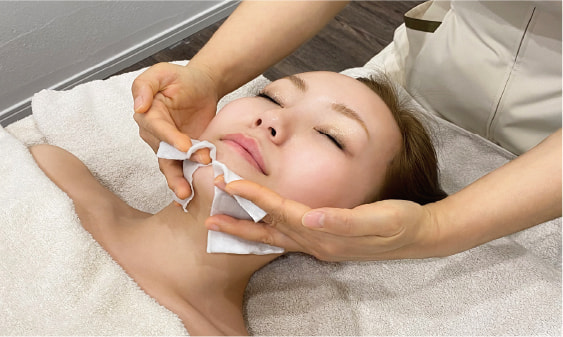 お客様のクレンジングを行います。トリートメントはお肌が清潔な状態で行ってください。